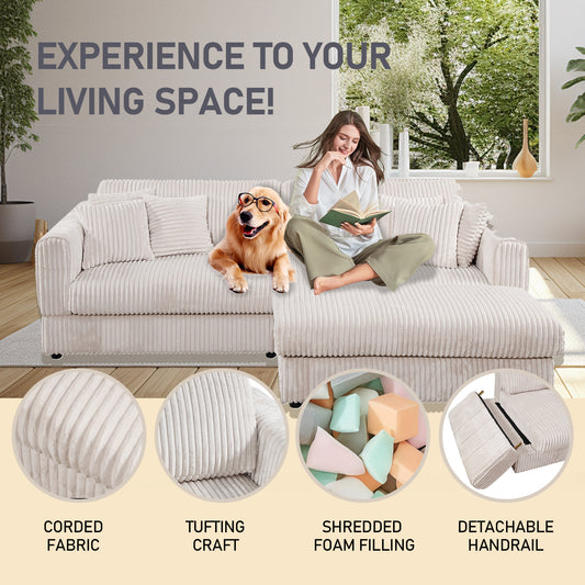 101.2" Sectional Sofa: Full - Compressed, Modular & Free - combined with Deep Seating for Living Room