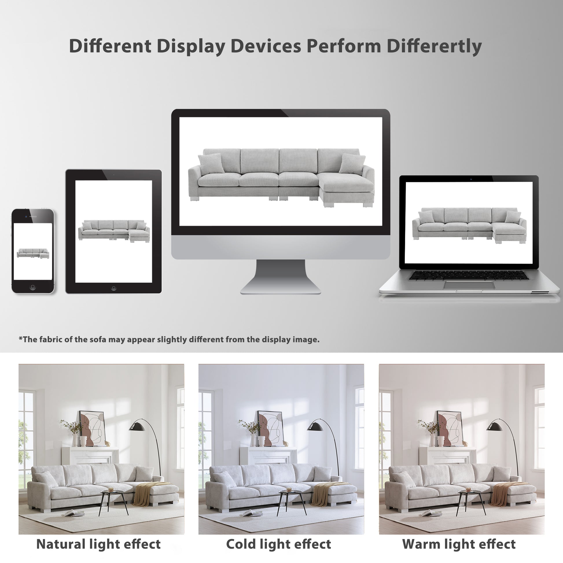 119'' Modern Oversized L - shaped Sectional Sofa: Ideal for Living Room, Apartment & Office - 5 - Seat Chenille with Chaise & 2 Free Pillows Light Gray