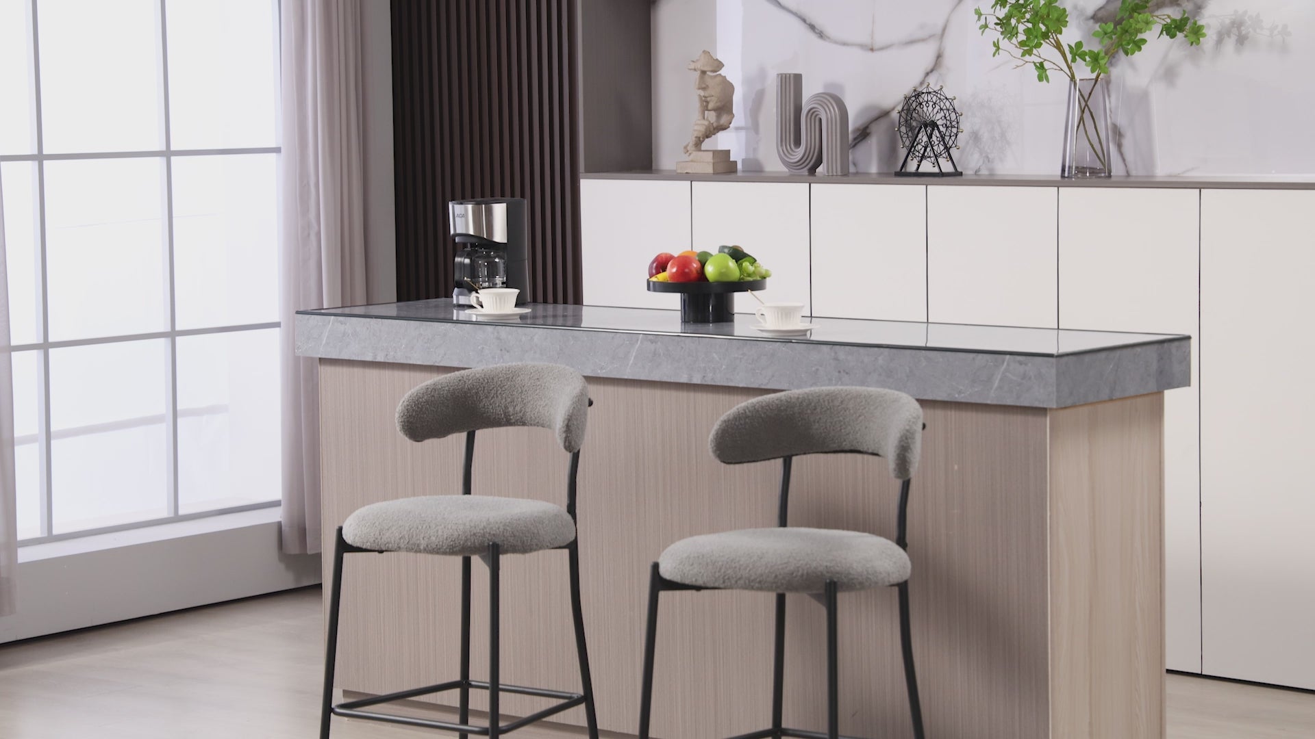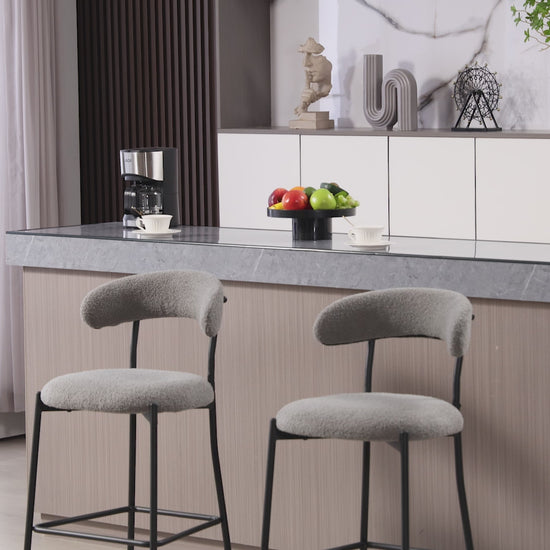 26 - Inch Counter Height Teddy Fabric Bar Stool with Black Powder - Coated Base