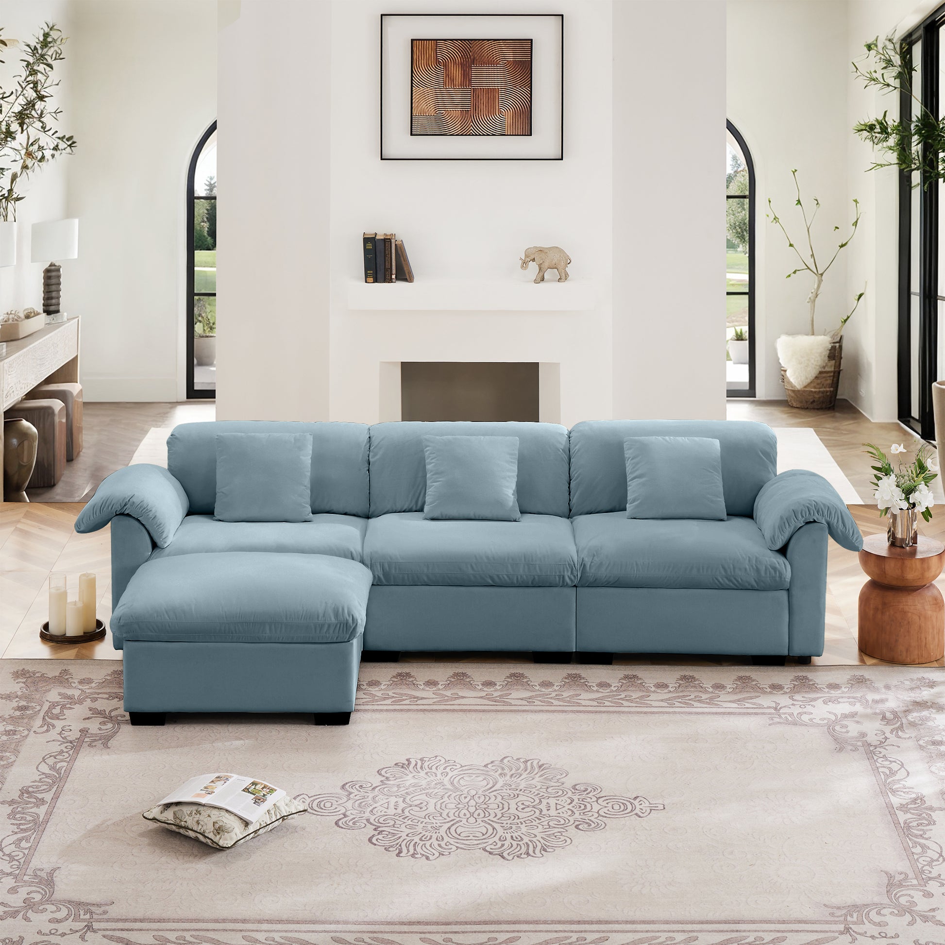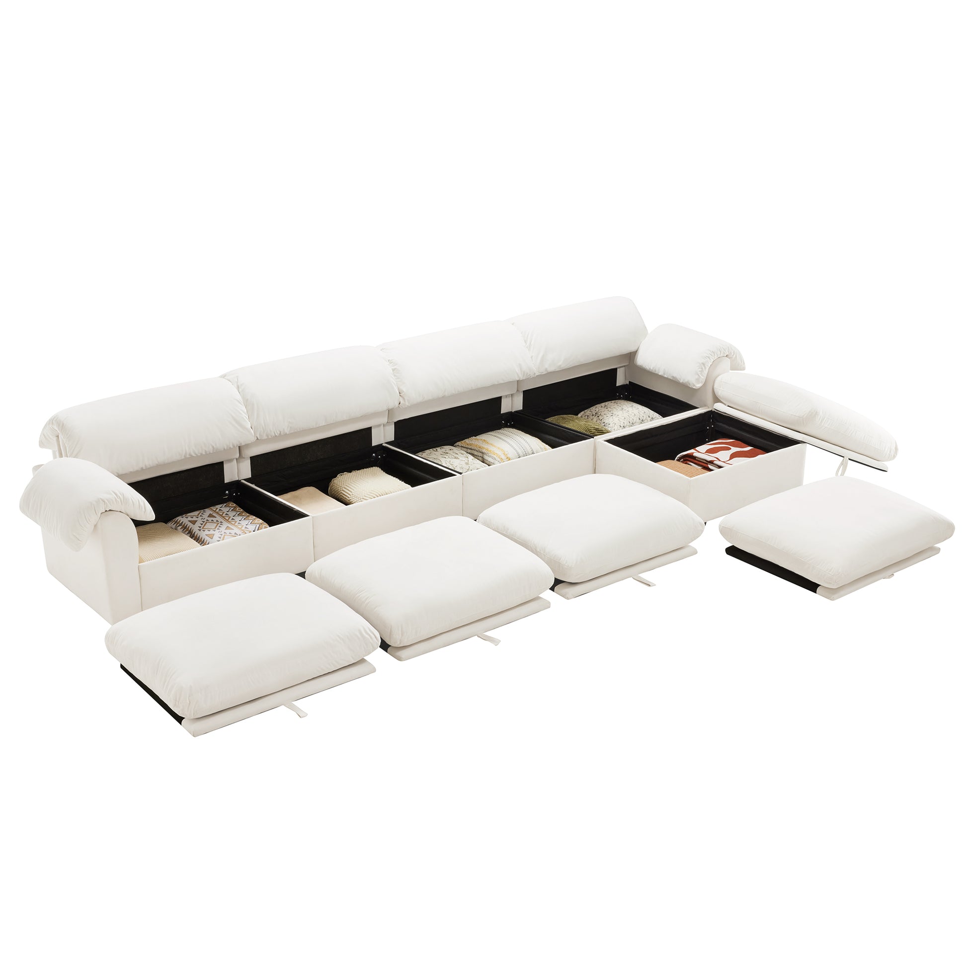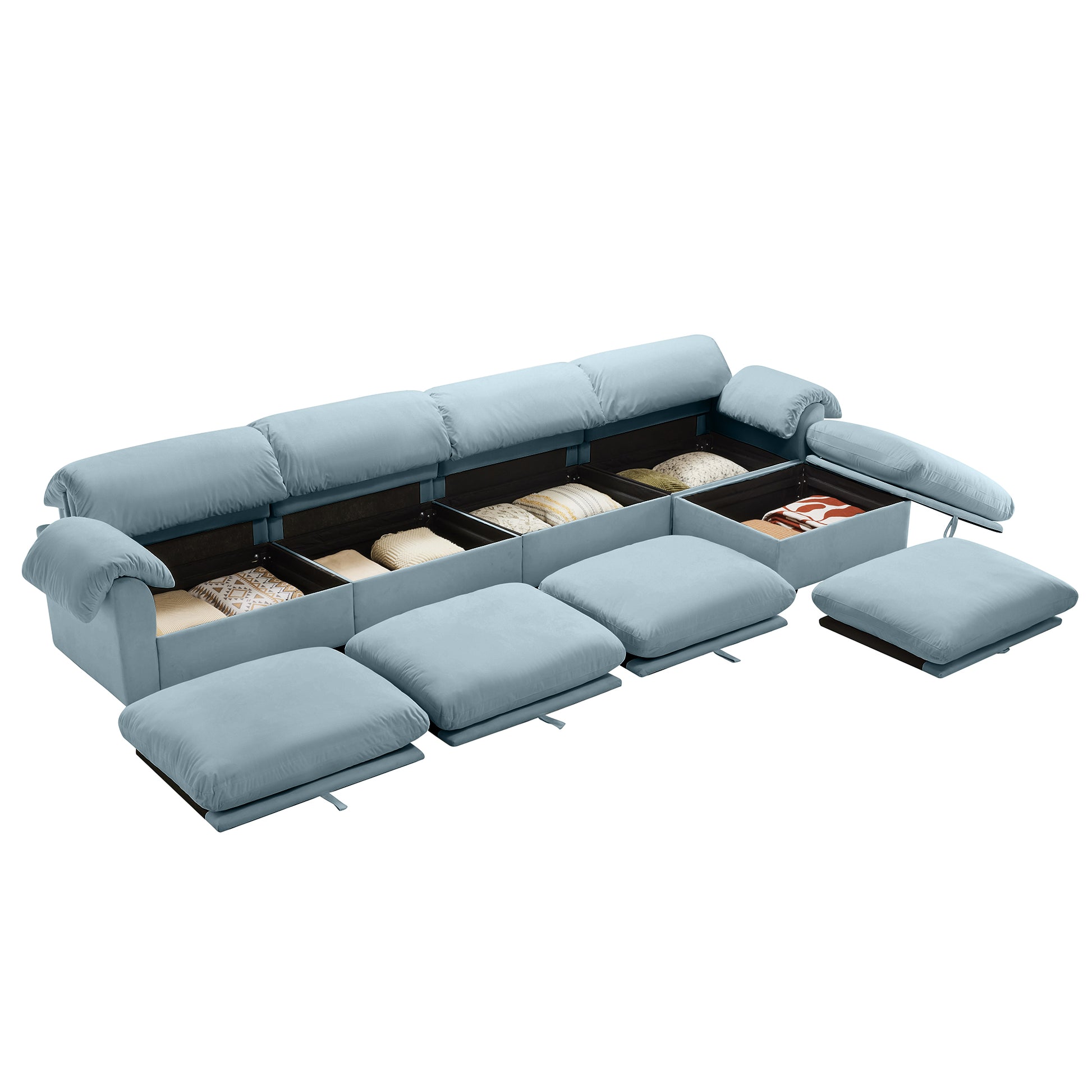3 - 4 Seater Modular Sofa: U/L - Shape, Storage Ottomans, Velvet 2 Color