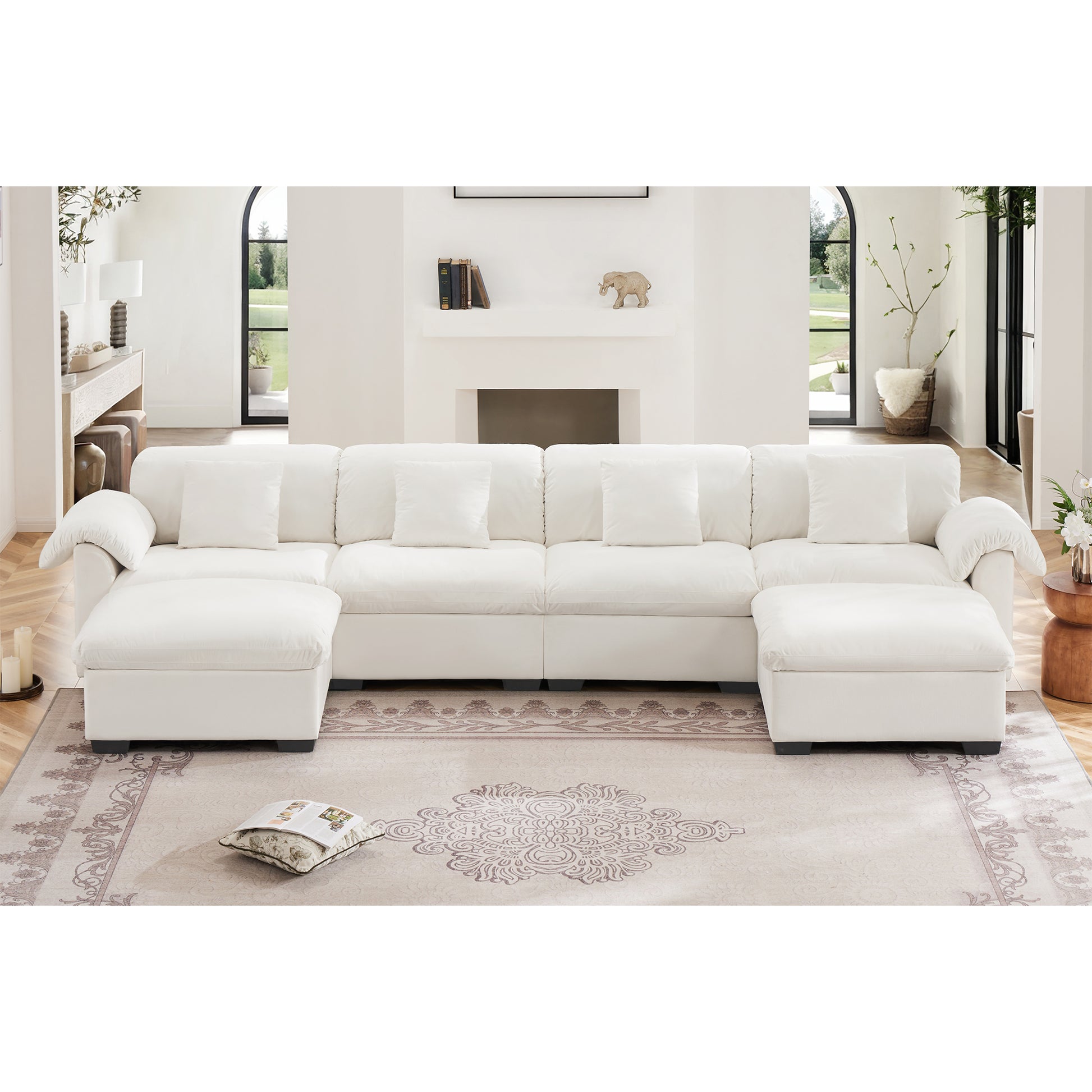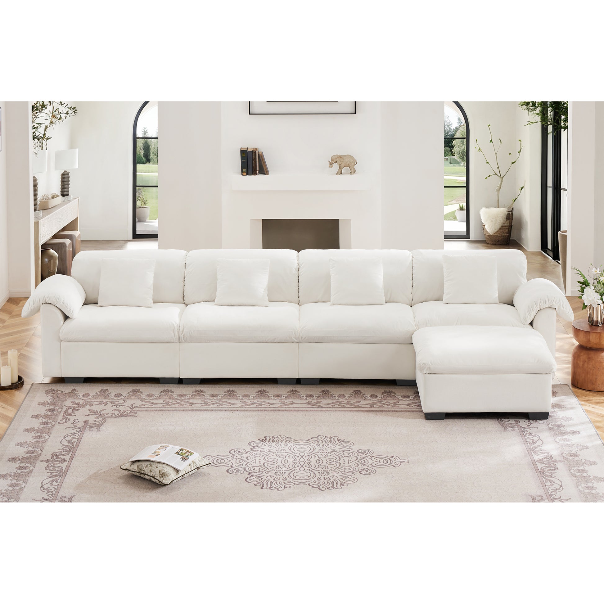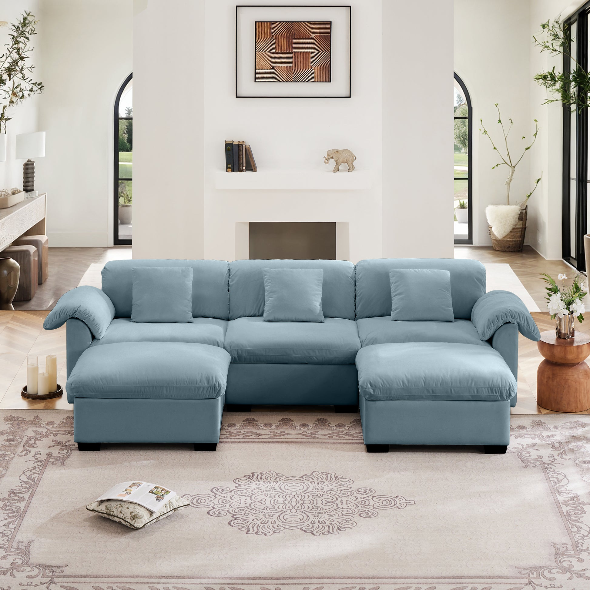 3 - 4 Seater Modular Sofa: U/L - Shape, Storage Ottomans, Velvet 2 Color
