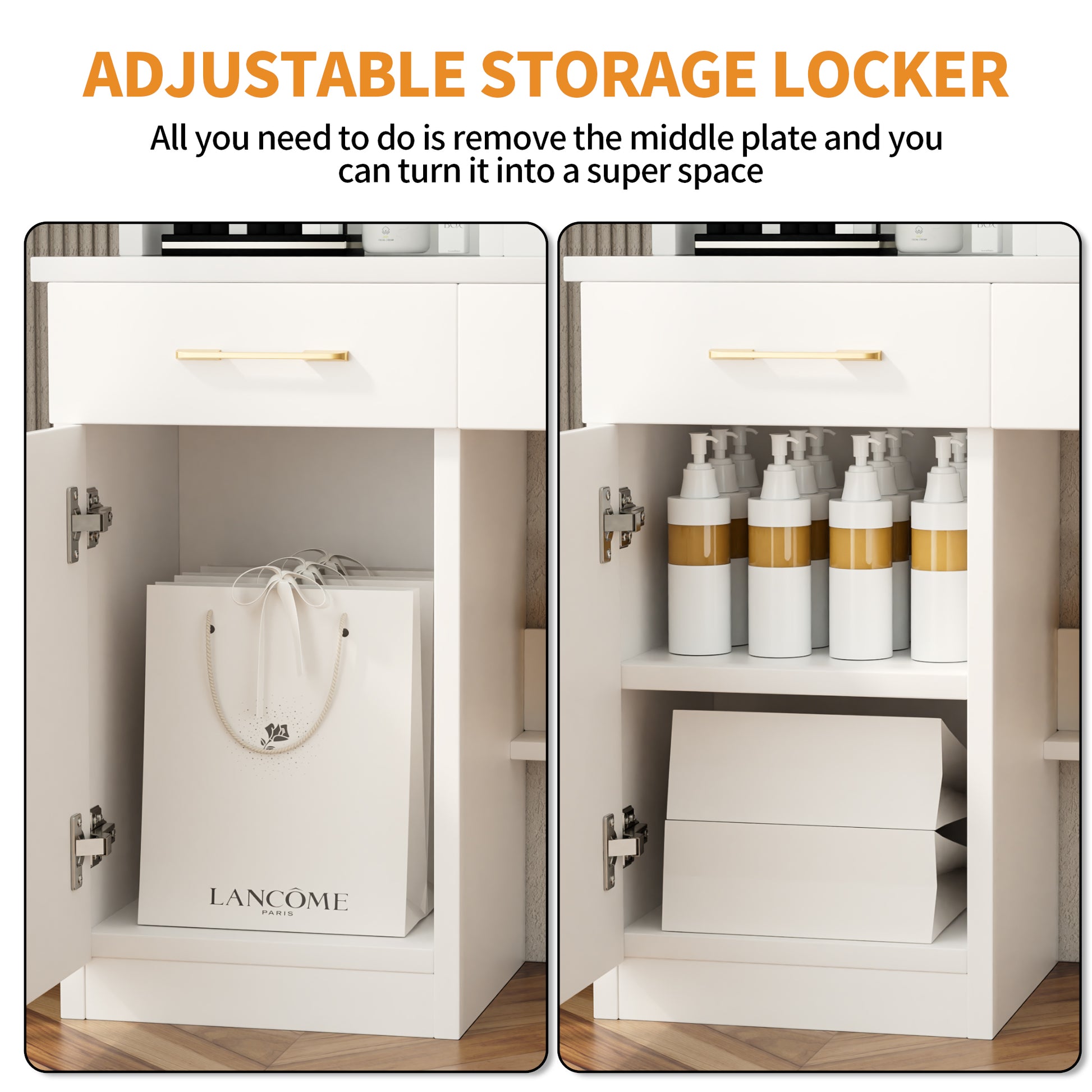 - [MAKEUP VANITY WITH COMPARTMENT]Are you bothered with never finding your lipsticks? Say goodbye to chaos! The detachable divider help you neatly organize your makeup products, brushes, and tools. This makes it easier to find what you need quickly, saving time during your makeup routine.