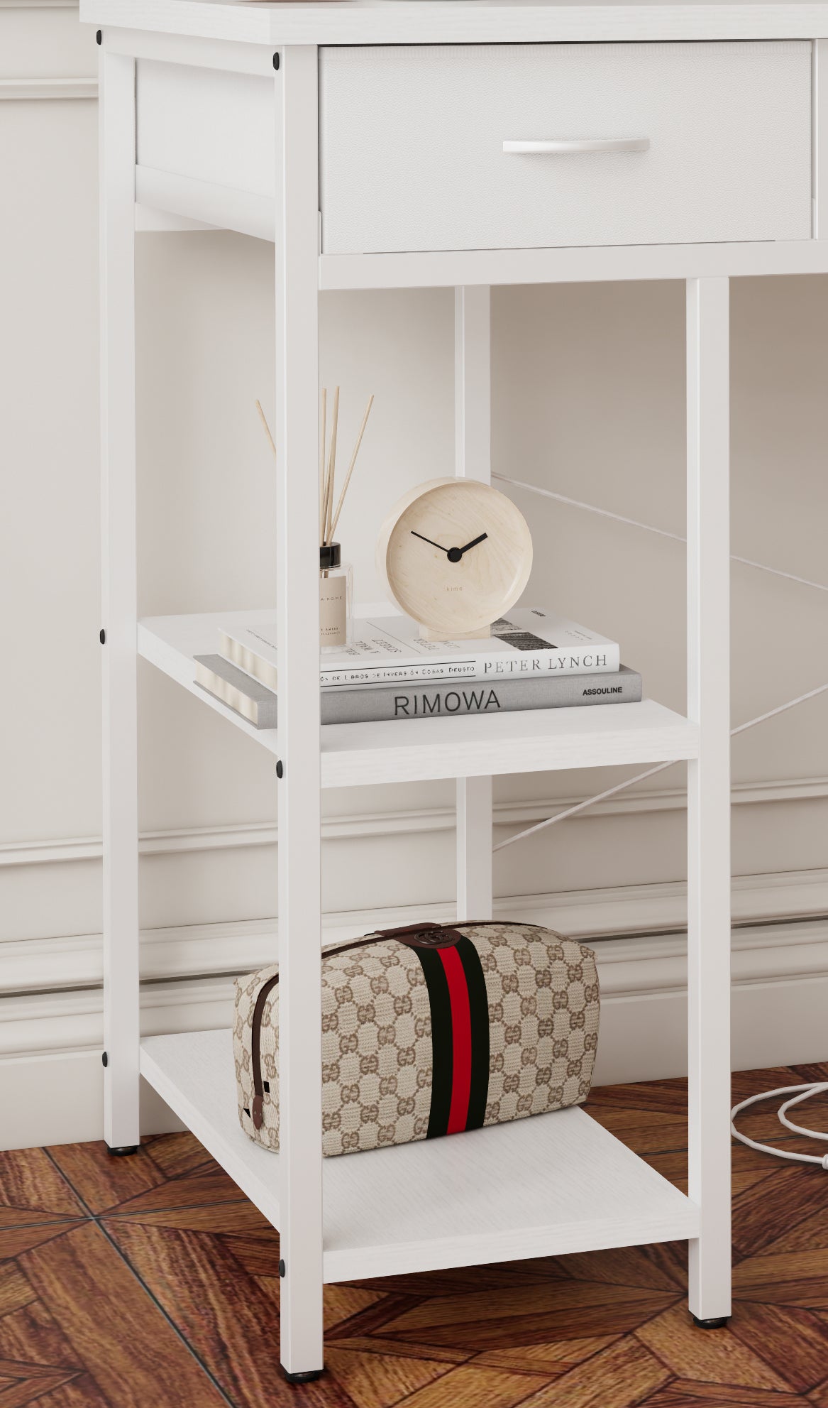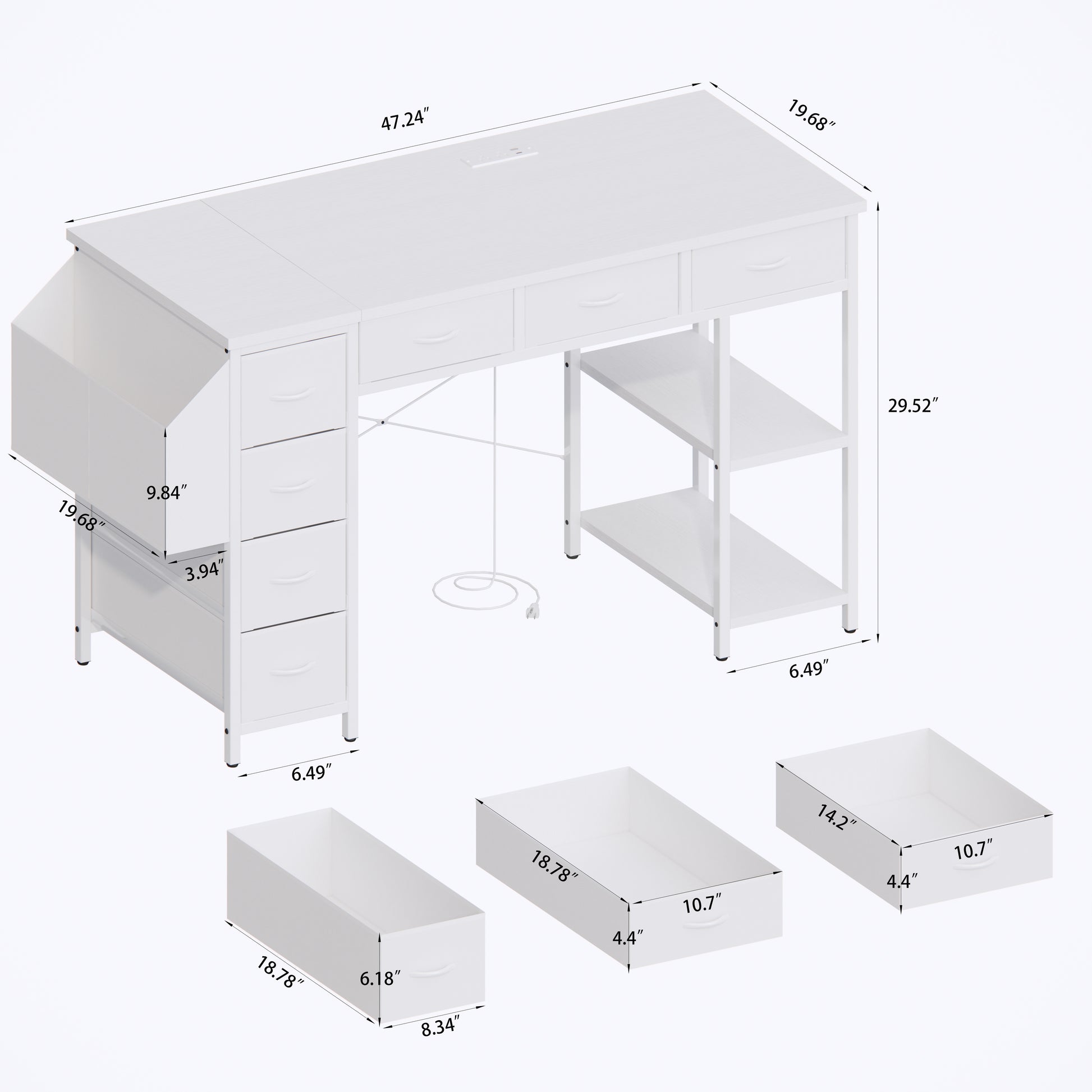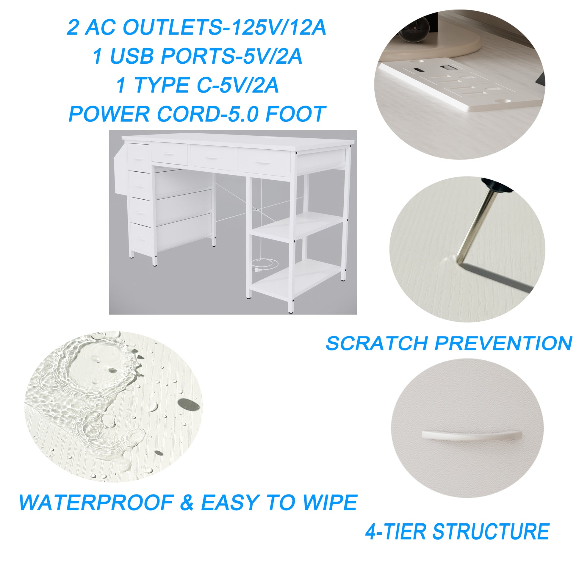 47" Computer Desk With Power Outlet,Writing Desk,Home Office desk,Vanity table with 7 Fabric Drawers, Large Side Pocket