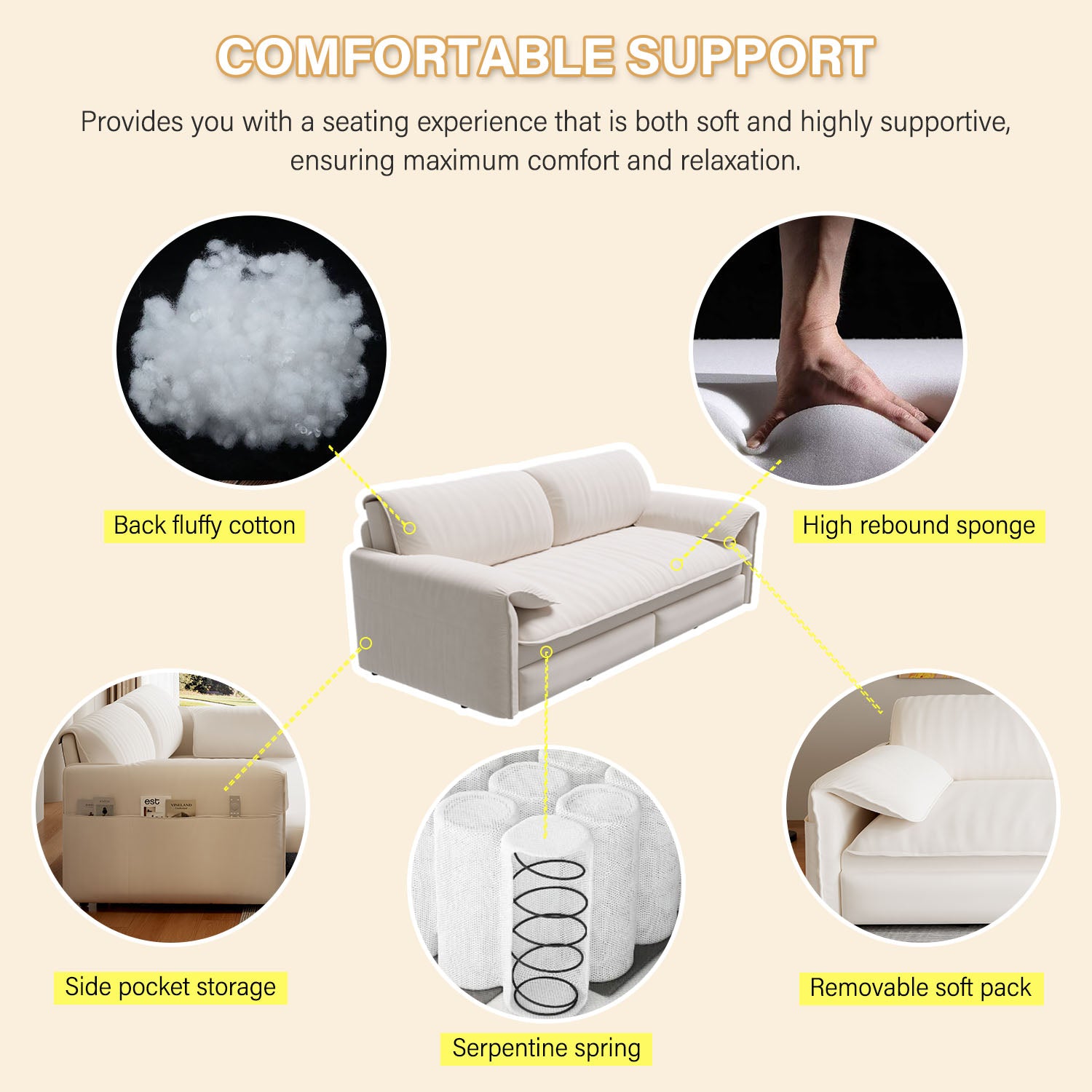 - With Storage: The side of the sofa is equipped with a fixed storage bag for convenient storage of TV remote controls, mobile phones, glasses, books, etc.