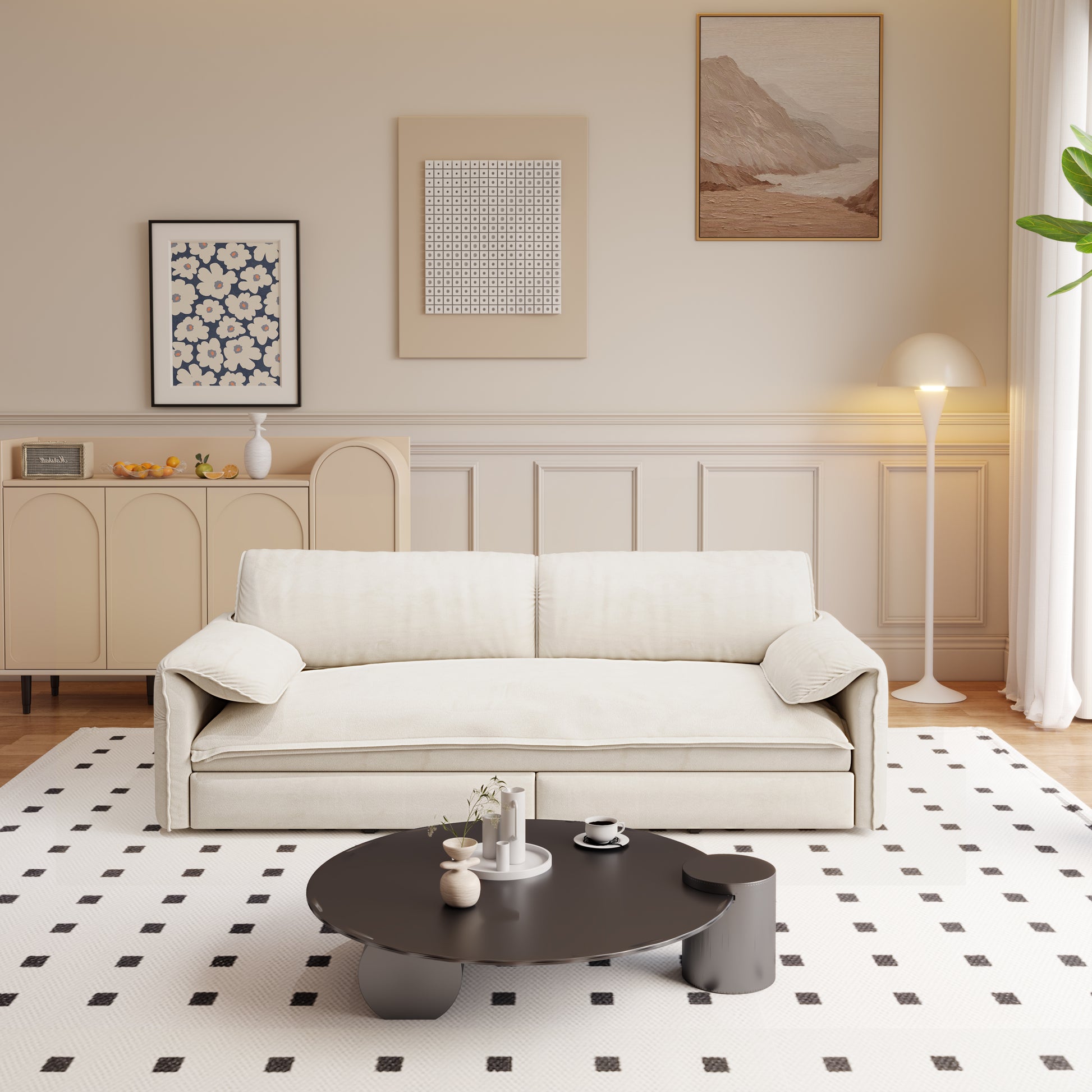 - 3-in-1 Convertible Sleeper Sofa Bed: Pull out the bed frame under the seat. There are two length options. When it is not fully pulled out, it becomes a chaise sofa, and when it is fully pulled out, this sofa can quickly turn into a Queen-size bed for resting.
