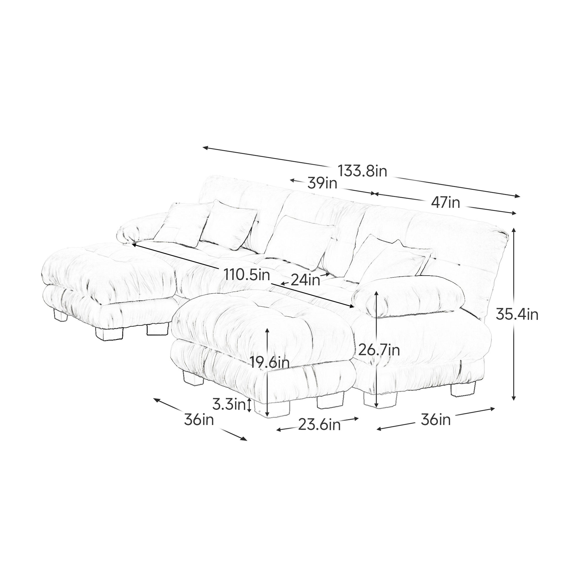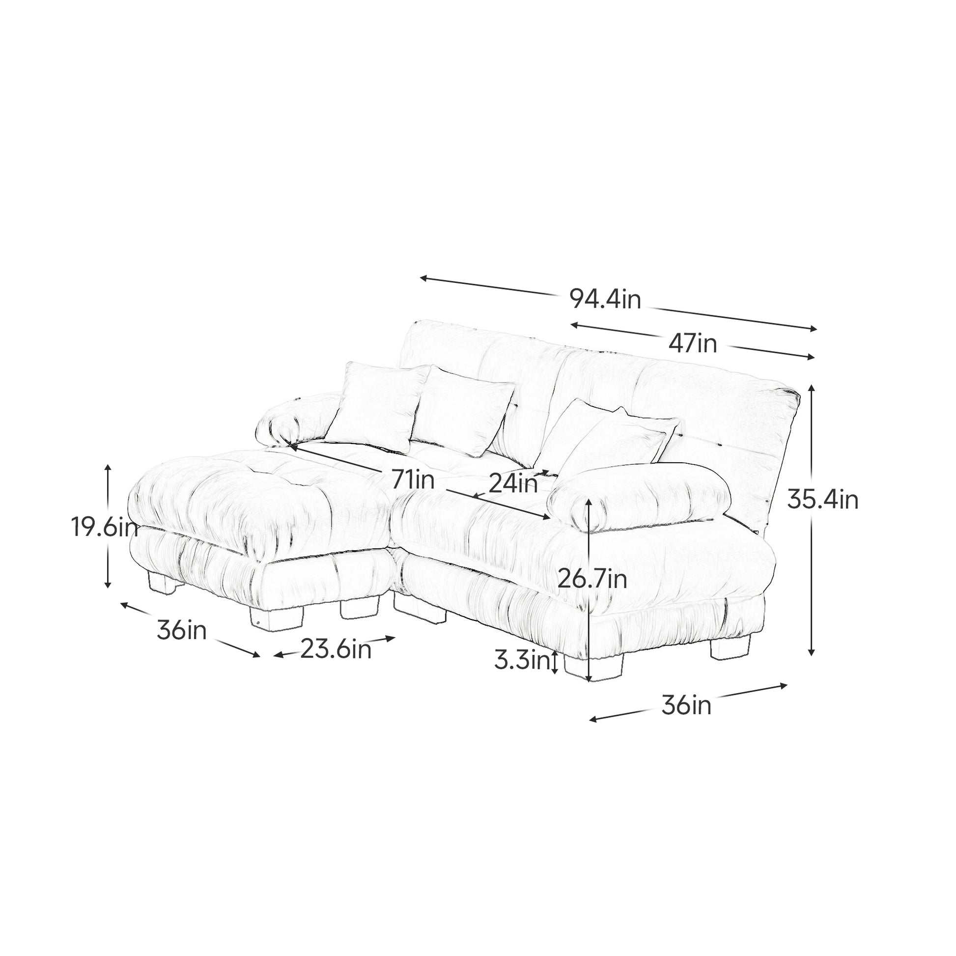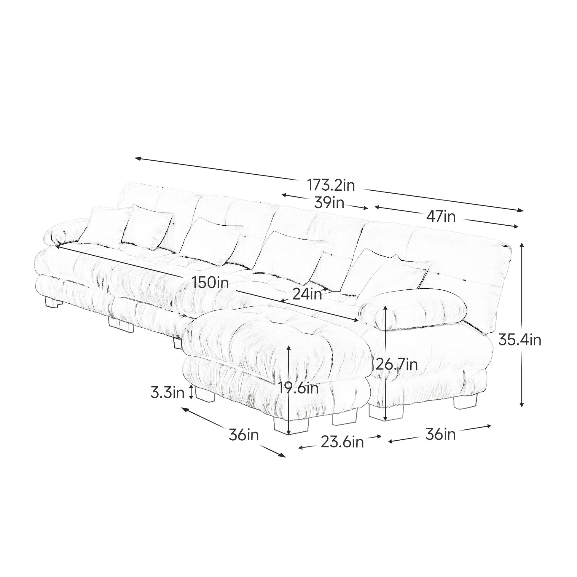 Chenille Cloud Couch: 2 - 4 Seater L - Shape Sofa for Living Room with Pillows