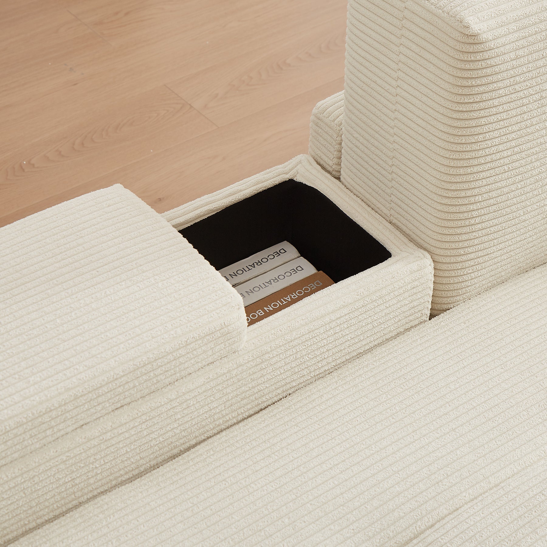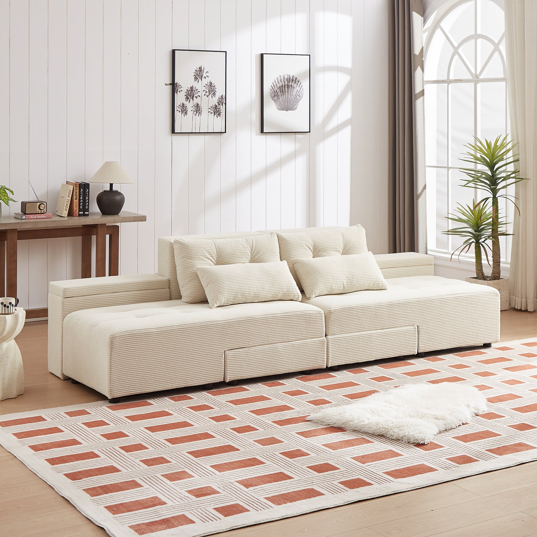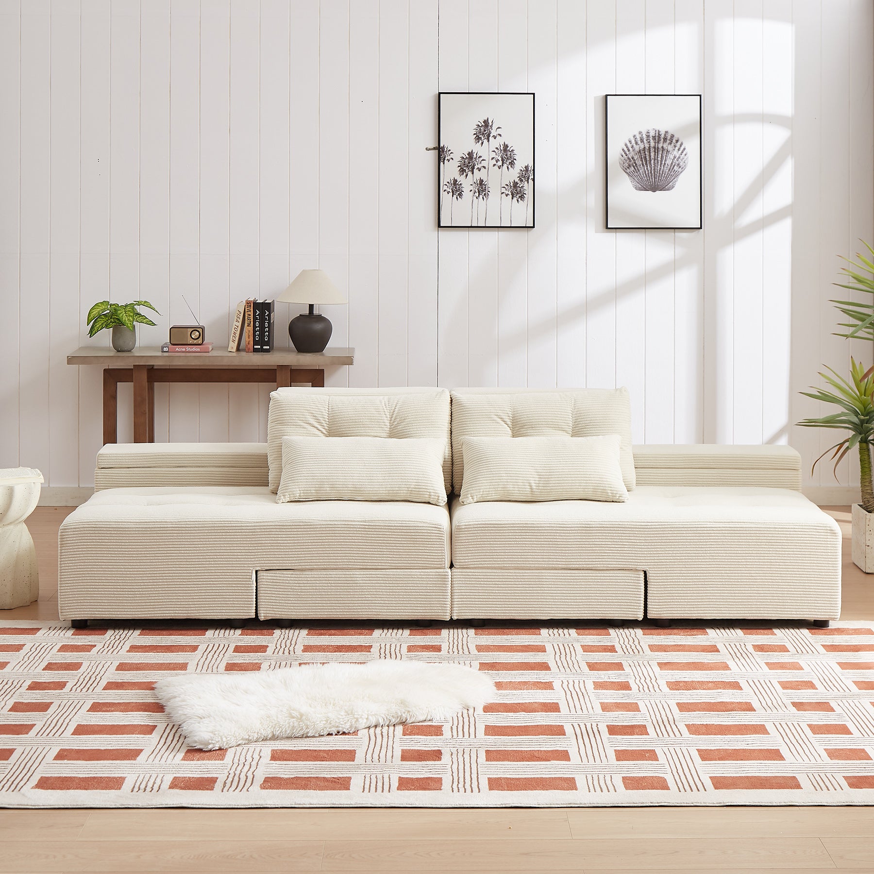 Corduroy Convertible 3 in 1 Sleeper Sofa and Sectional Sofa with 4 Storage Space With 4 pillows