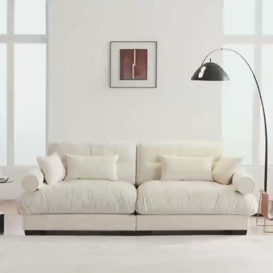 Deep Seat Cloud Couch in Cream: Modular Velvet Sectional with Bolstered Armrests 2-3-4 seats