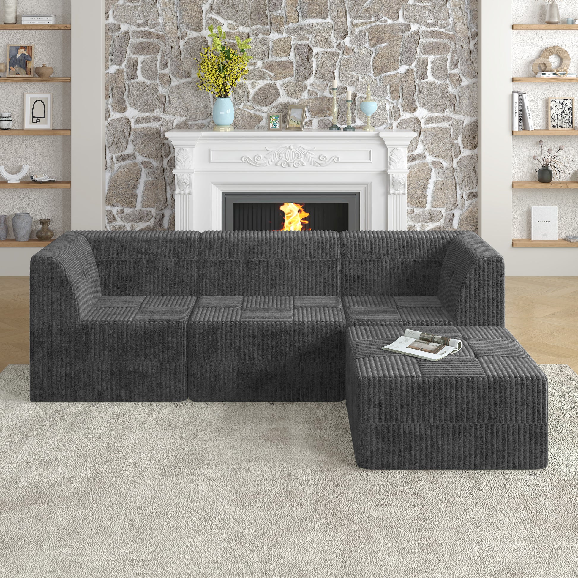 Product Features- Minimalist Modular Sectional Sofa Set: The modern modular shape sofa couch features a simple style, focusing more on clean lines and premium fabric to bring a timeless and chic to your home, sure make your living room the center of attention.