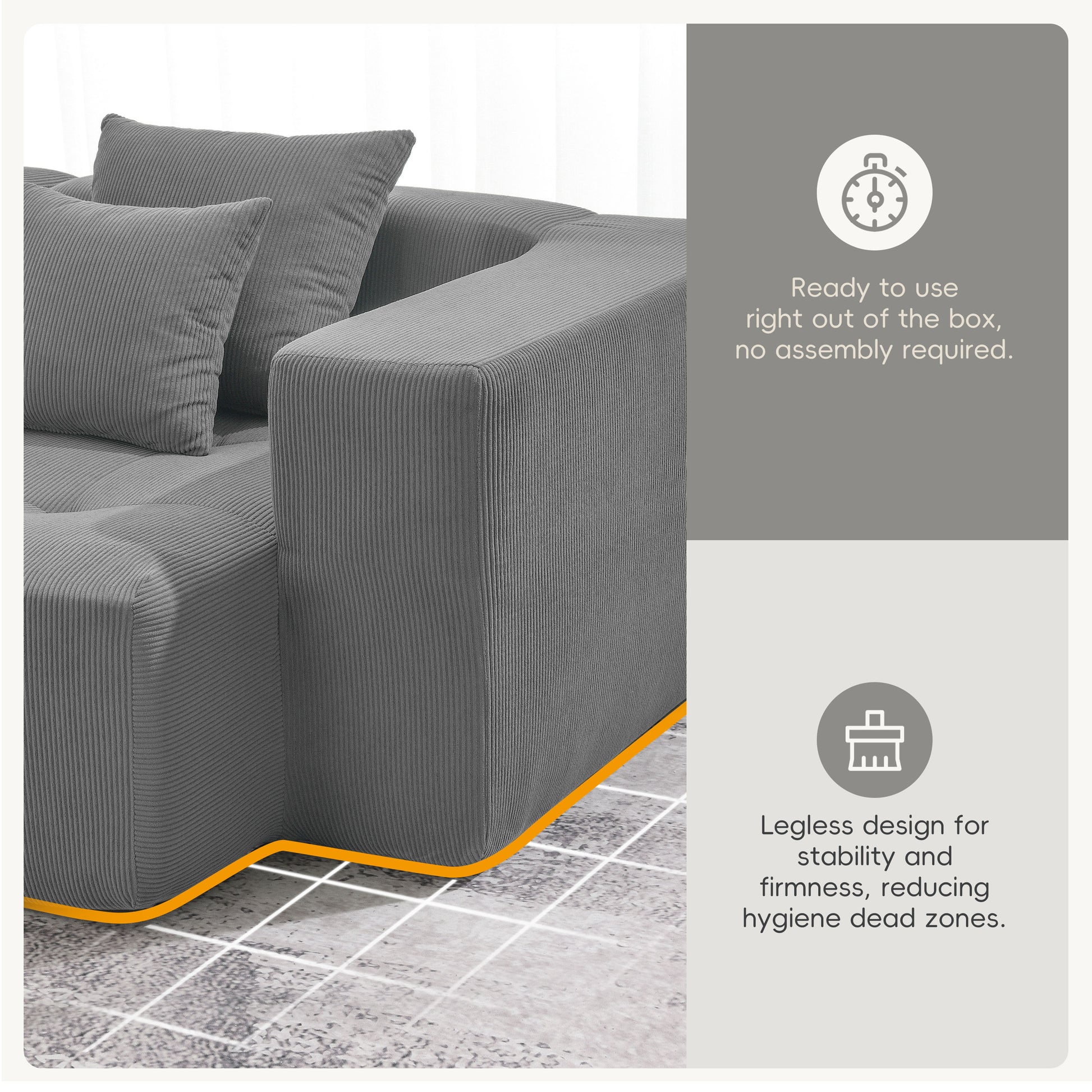 - High-quality Corduroy Fabric:The sofa's corduroy fabric provides a blend of durability and comfort. This material is renowned for its strength, which helps the sofa withstand everyday use without showing signs of wear quickly. The distinct ribbed texture of corduroy not only enhances the visual appeal of the sofa but also offers a soft, plush feel that adds a layer of comfort.
