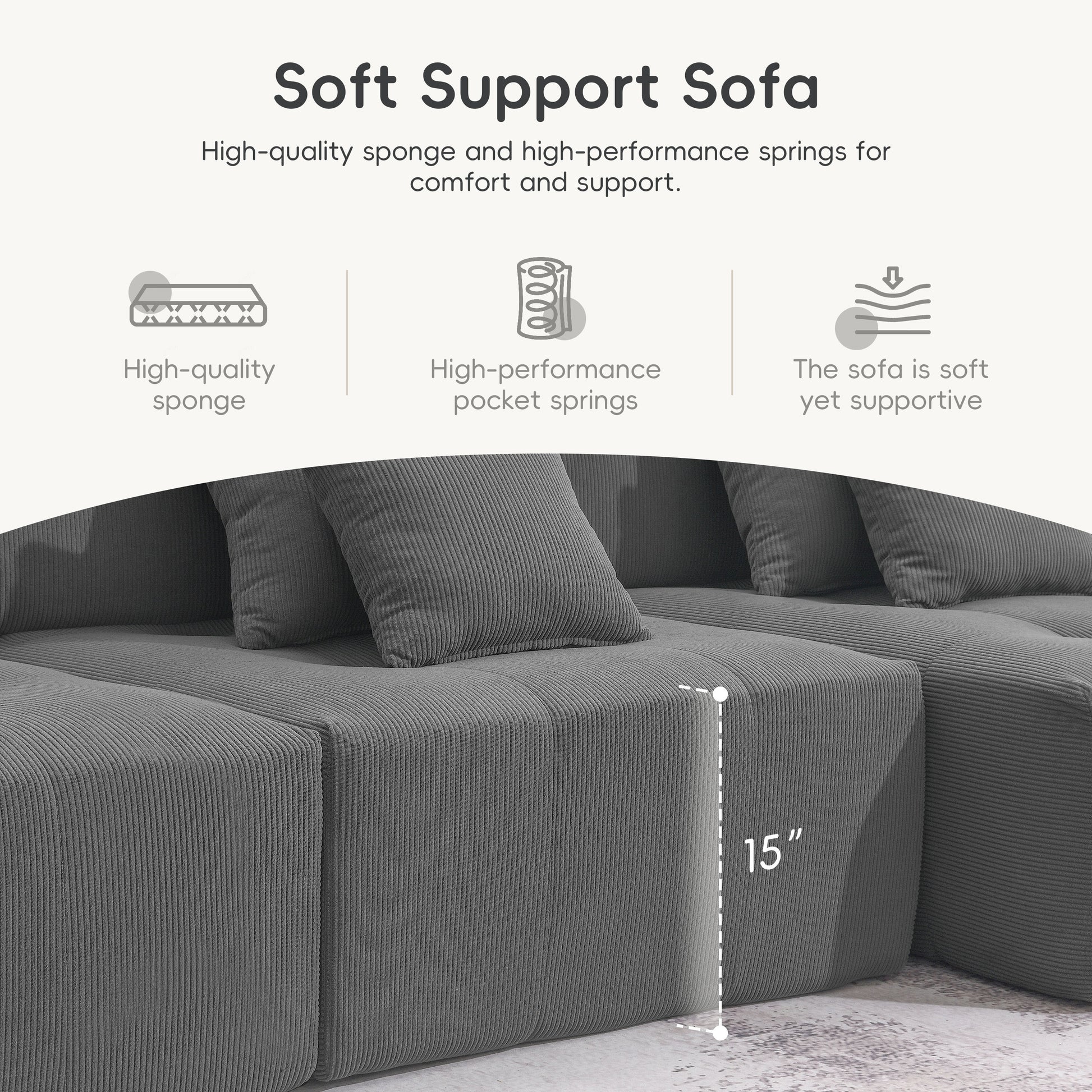 L Shaped Modular Sectional Sofa,Wide and Deep Seat No Assembly Required,3 Colors