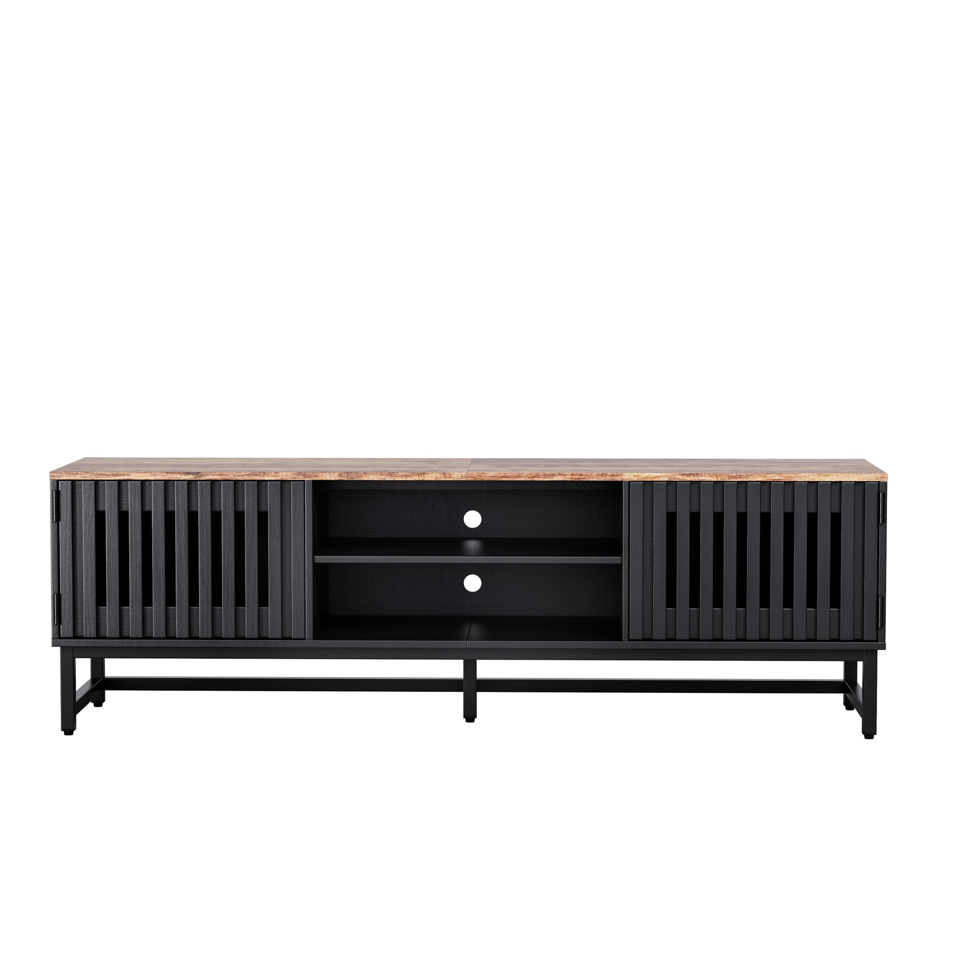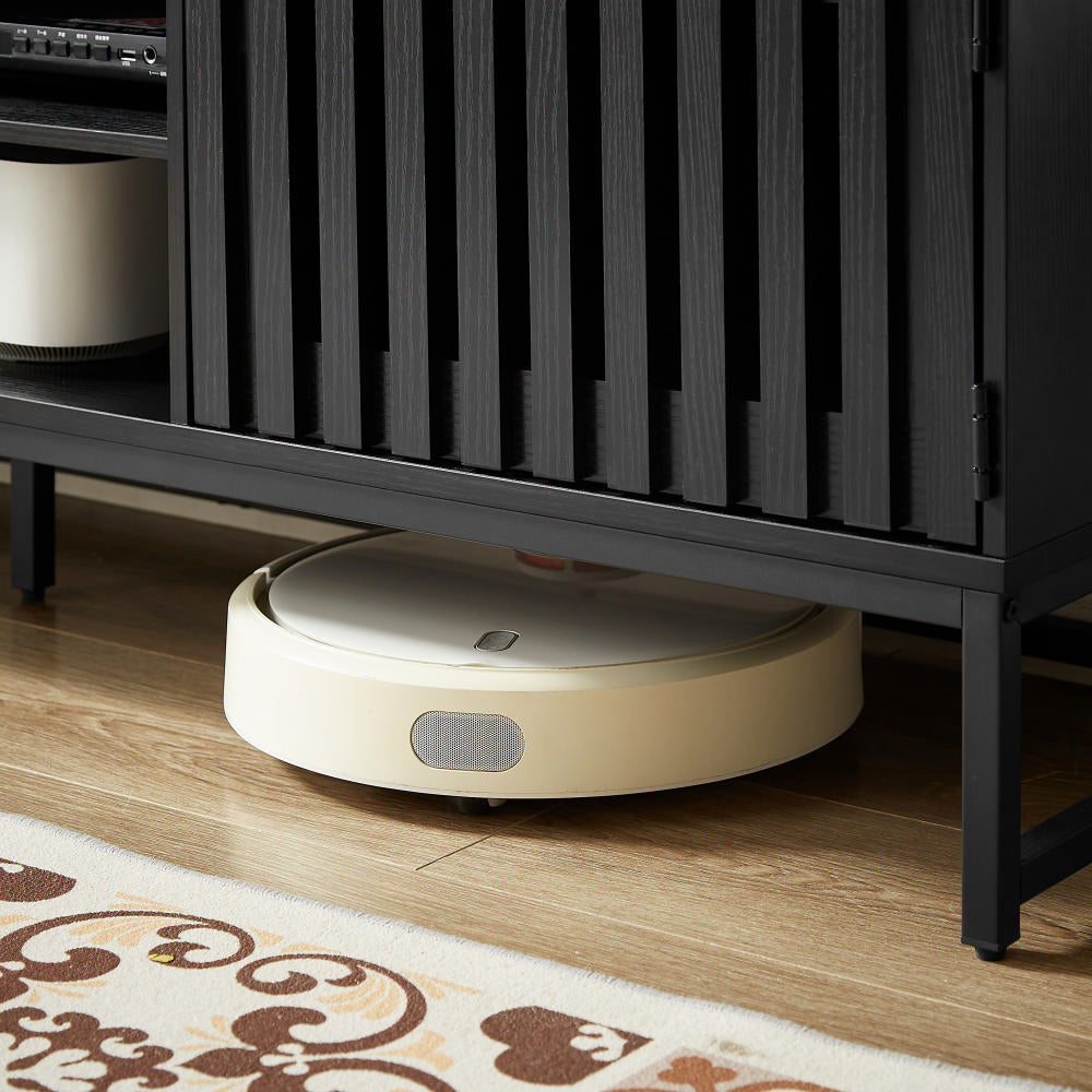 - Eye - Catching Aesthetic: Our black TV stand with grille - striped doors is a modern masterpiece, designed to be the focal point of your living room or dining room. The contemporary design not only adds a touch of sophistication but also effortlessly complements a variety of interior styles, from minimalist to industrial. In today's US homes, where design and style are highly valued, this TV stand stands out as a statement piece that elevates the overall look of the space.