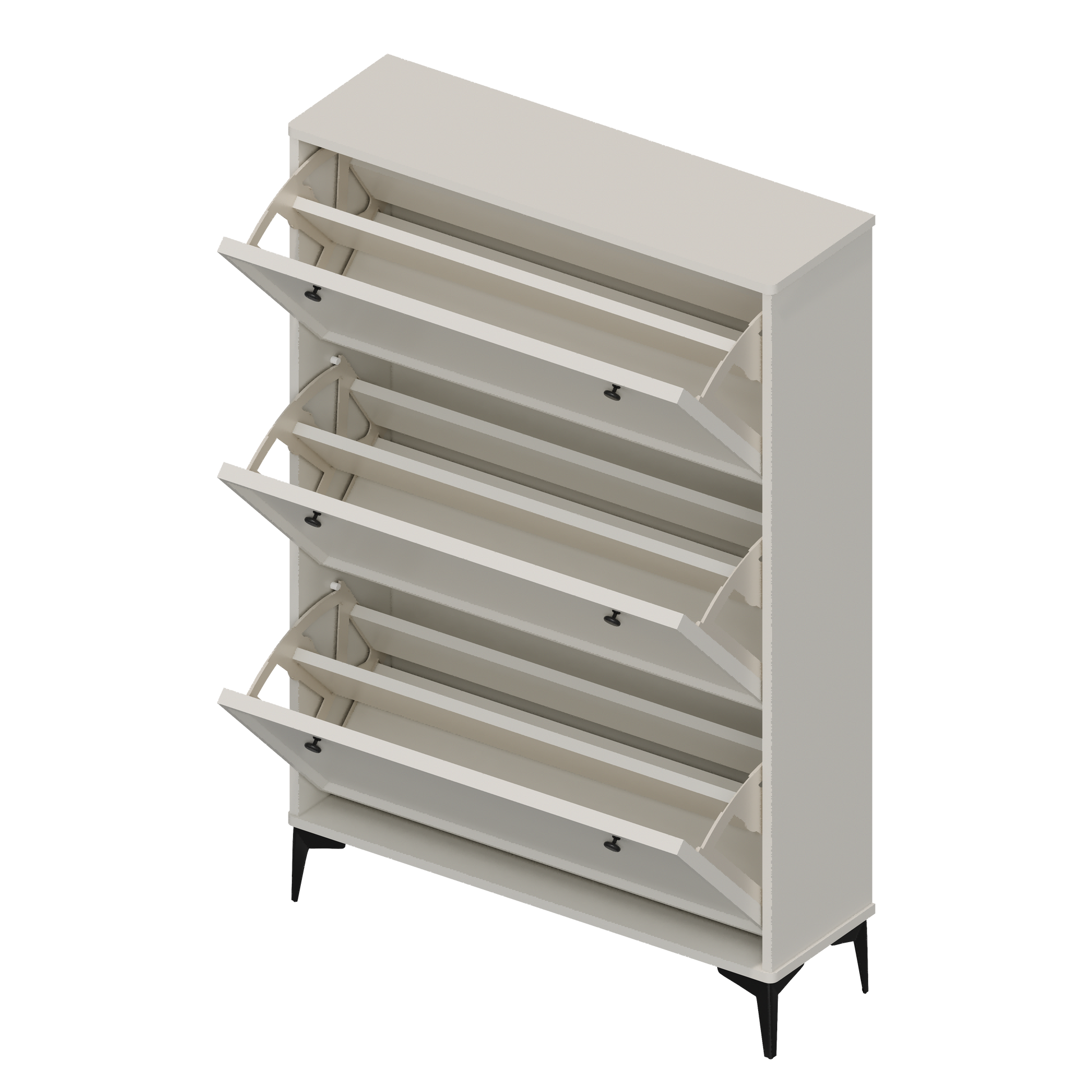 Modern Stylish White Entrance Shoe Cabinet: 3 Flip Drawers, Narrow & Hidden Design