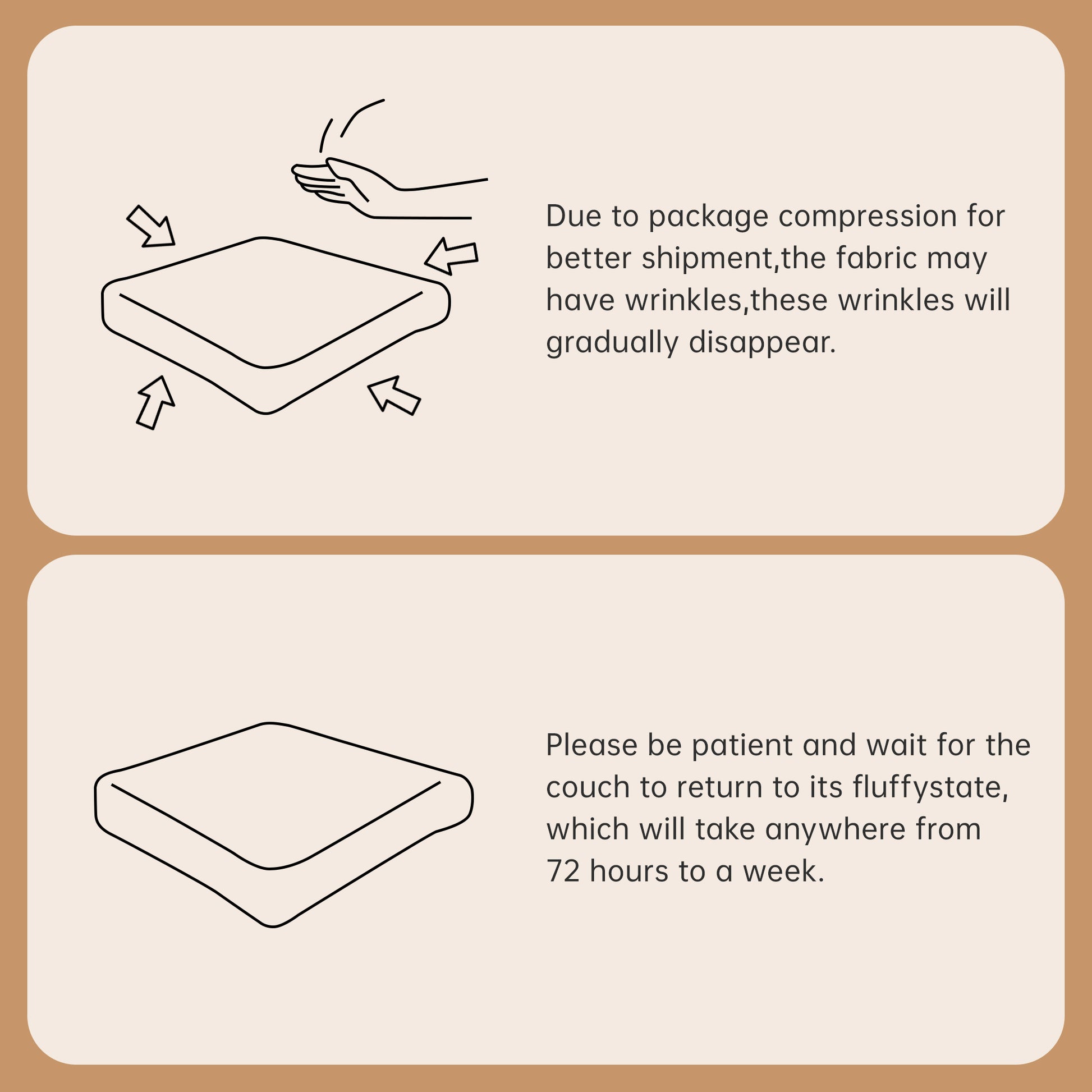- Notes: All cushions and pillows are vacuum-packed for convenient transportation. It may take 2 - 7 days for them to fully expand to their original shape. Please note that due to monitor display settings, the color of the item may vary slightly from the product image,The actual item's color is the definitive reference.