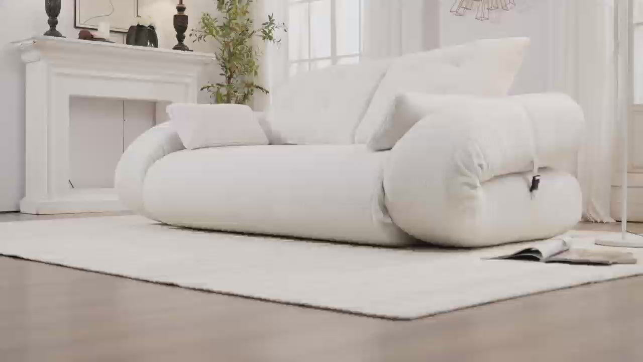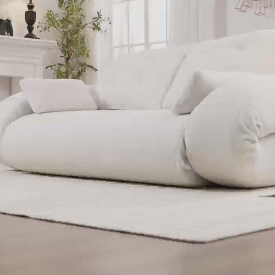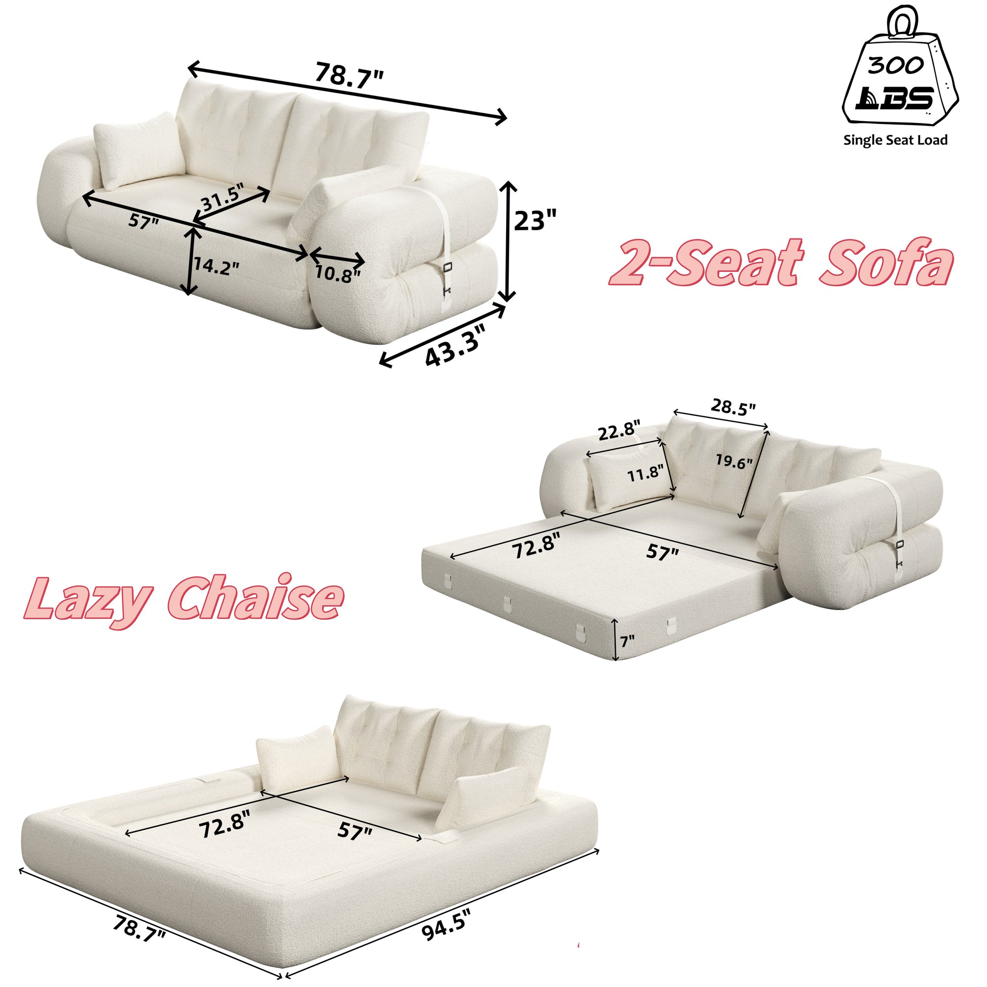 - Premium Comfort: Upholstered in soft, breathable Teddy fabric, this convertible sofa bed features high-density foam that effectively alleviates pressure while providing robust support. The accompanying plush pillows enhance your lounging experience, ensuring relaxation like never before.Perfect for the whole family, it's a cozy haven that's as kind to sensitive skin as it is stylish.