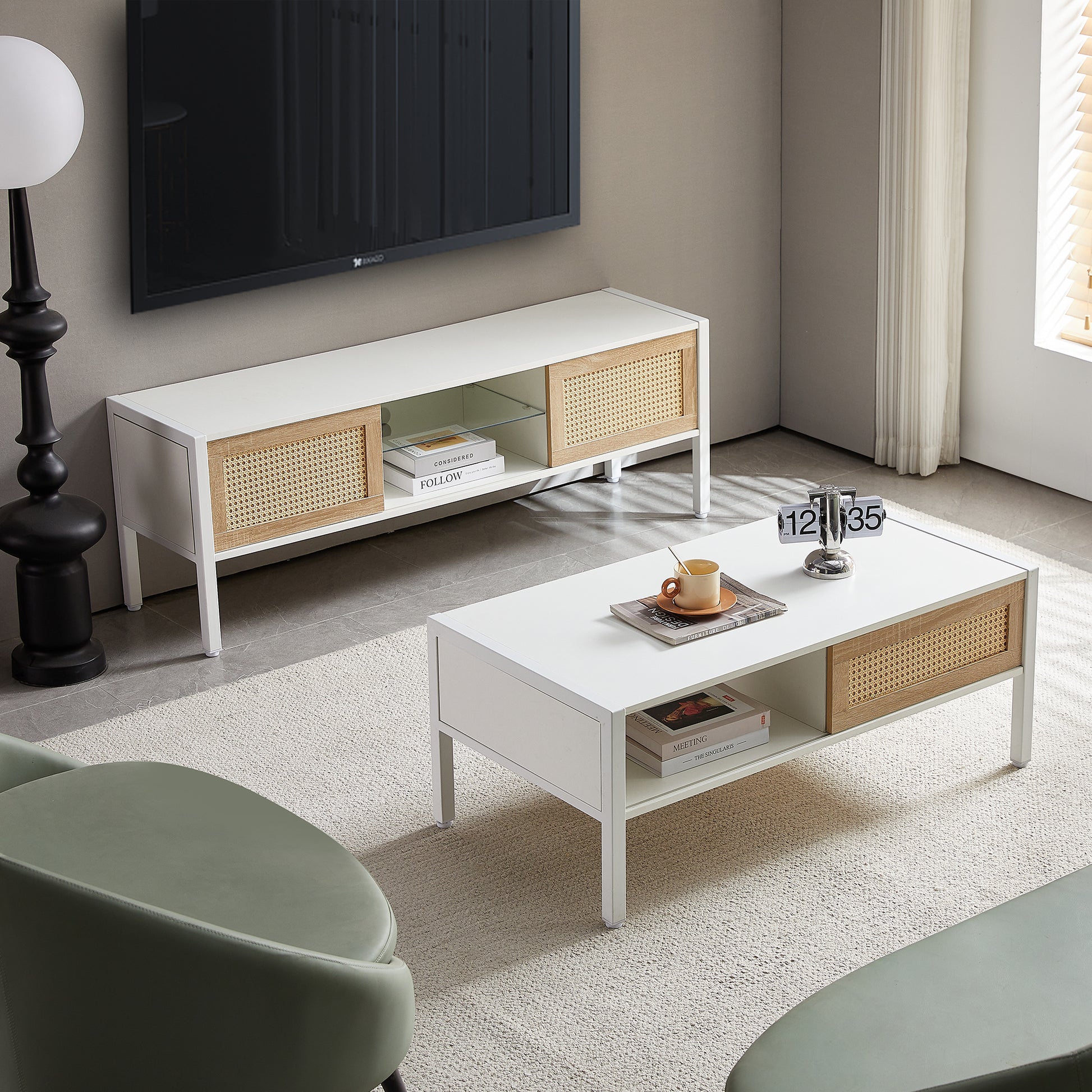Rattan Coffee table & Rattan TV cabinet & Rattan End table with drawer