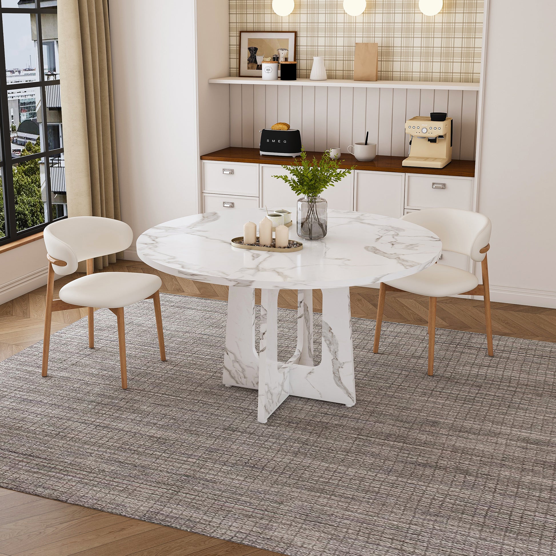 - Spacious Tabletop for Gatherings:Indulge in family feasts or friendly gatherings with our 47.24-inch diameter round dining table, offering ample space for 4-6 people. The 29.92-inch standard height ensures ergonomic comfort, making it perfect for both intimate meals and lively parties.