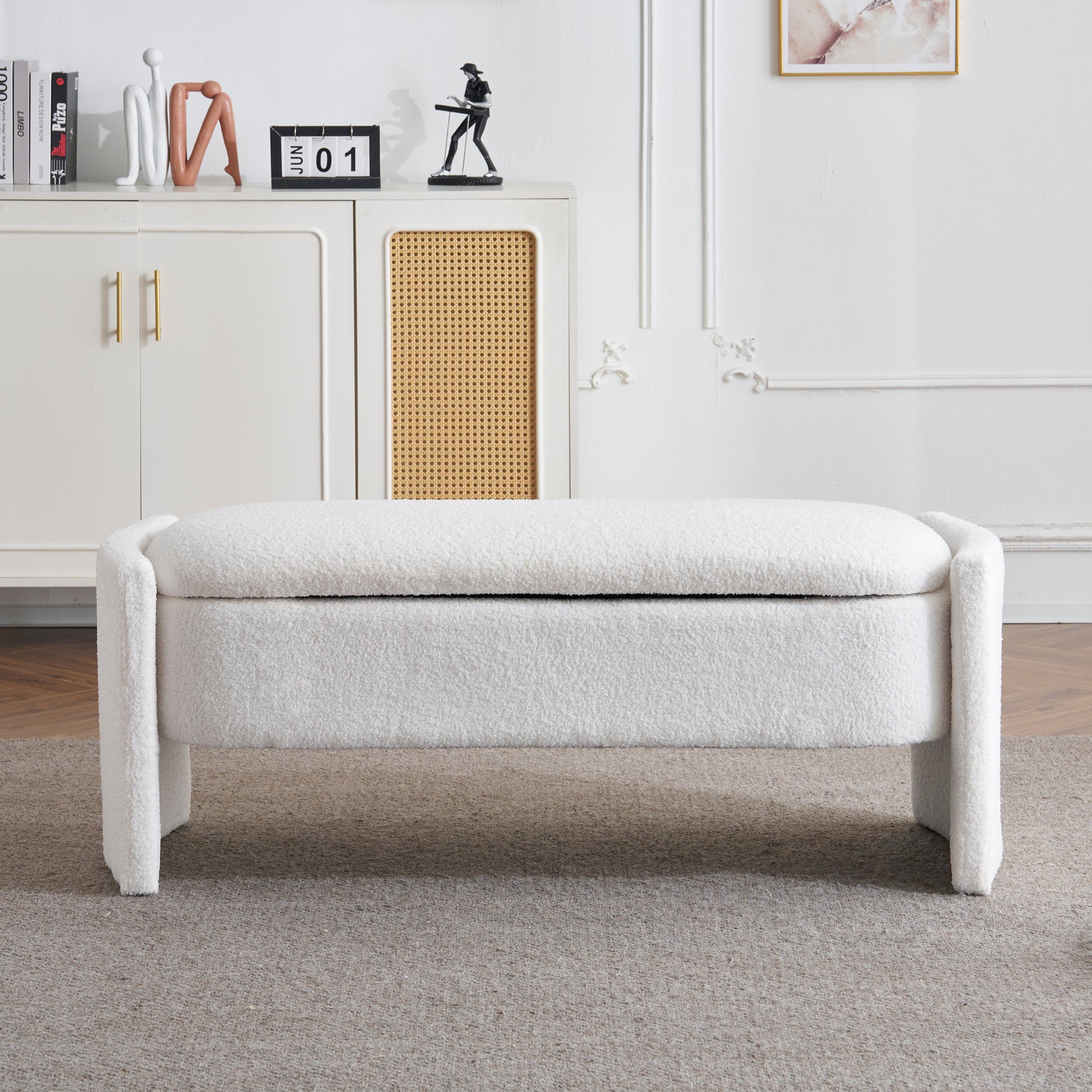 Storage Ottoman Bench of boucle material End of Bed Stool