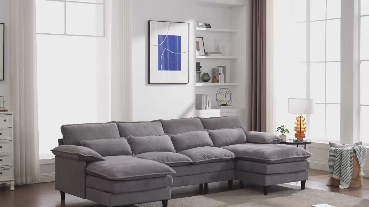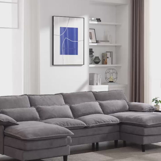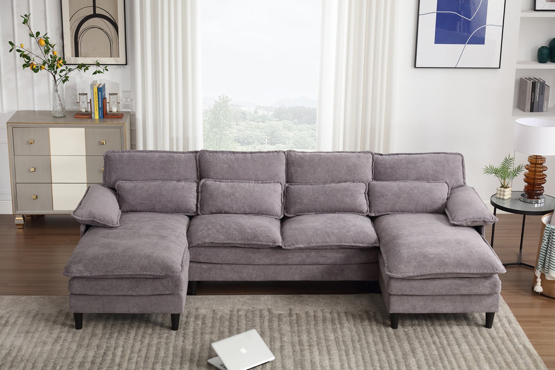U Shaped Modular Sectional Sofa Couch with 4pcs waist pillows And Chaise Lounge