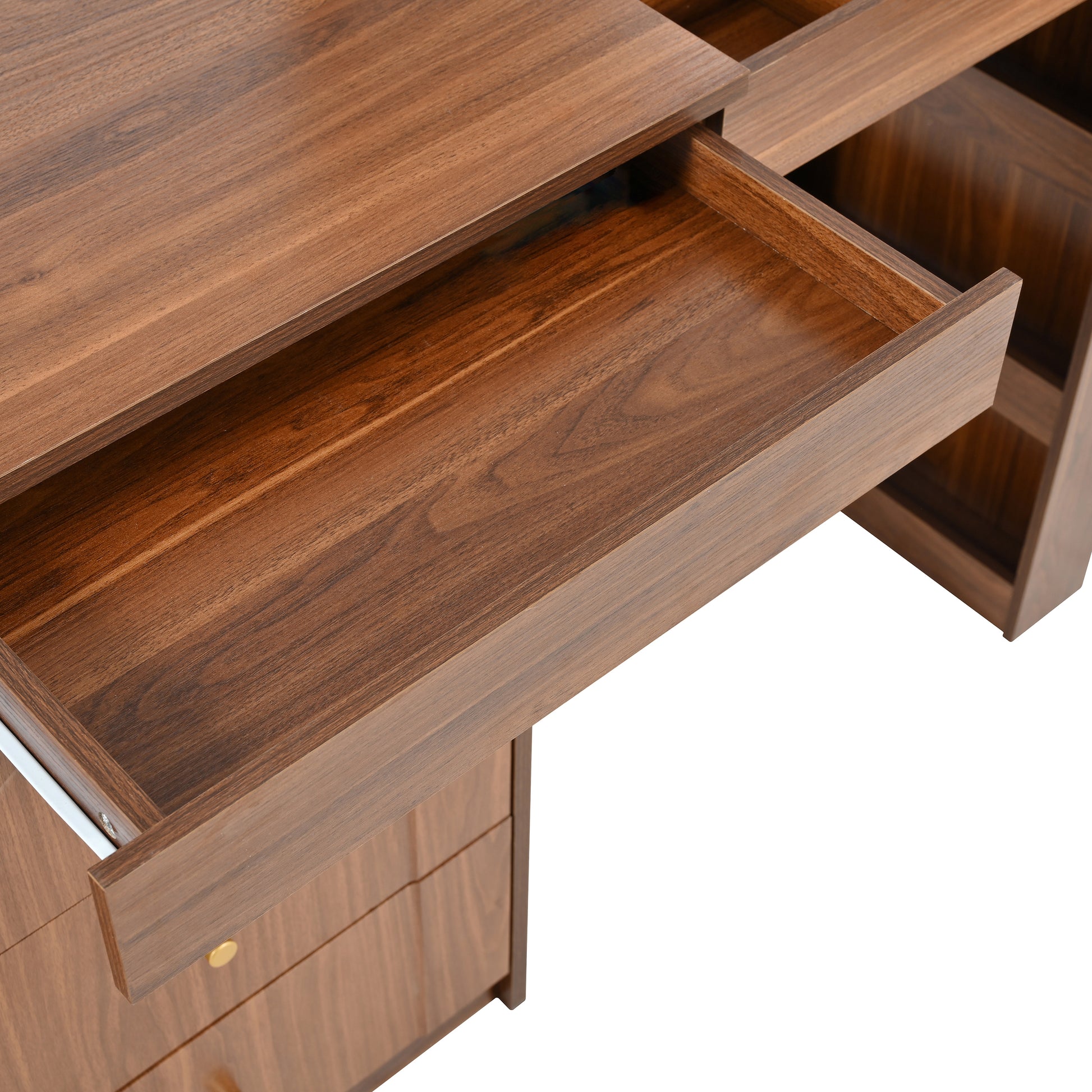 - 4. Convertible Vanity Desk with Flexible Layout:This vanity desk features a versatile tabletop design that can be easily adjusted to suit your space. The desktop can be arranged in a straight horizontal setup or transformed into an L-shaped layout, making it ideal for rooms of various sizes and layouts. Whether you have a compact bedroom or a spacious dressing area, this convertible vanity adapts to your needs while offering both style and practicality.