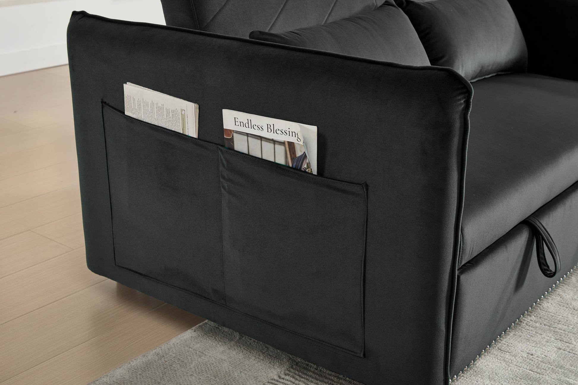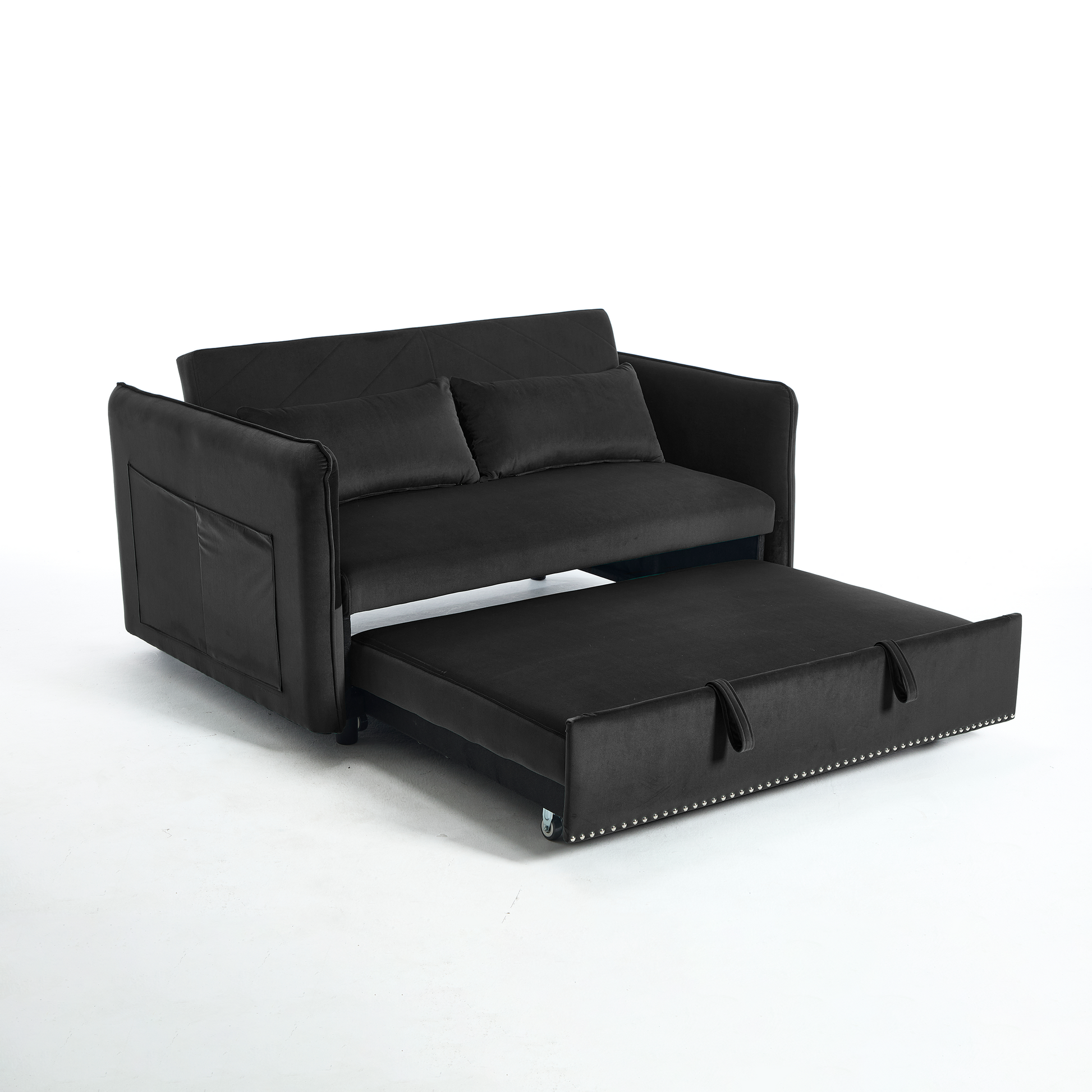 Velvet 3 in 1 Convertible Sleeper Futon Sofa Bed, Small Loveseat Lounge Couches with 2 Pillows, Reclining Backrest, Side Pockets