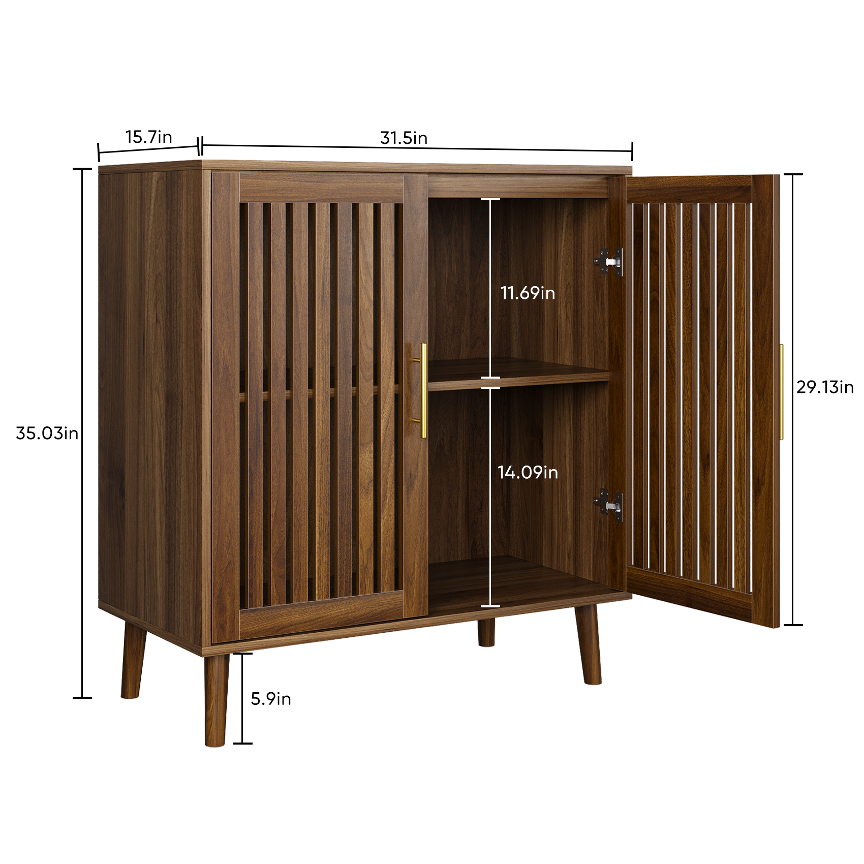- 【Modern Farmhouse Style with Fashionable and elegant Design】This walnut storage cabinet combines rustic farmhouse charm with modern elegance, featuring unique slatted doors that create a striking focal point in any room. Its versatile design effortlessly complements dining rooms, living rooms, offices, or kitchens, adding both functionality and aesthetic appeal to your home